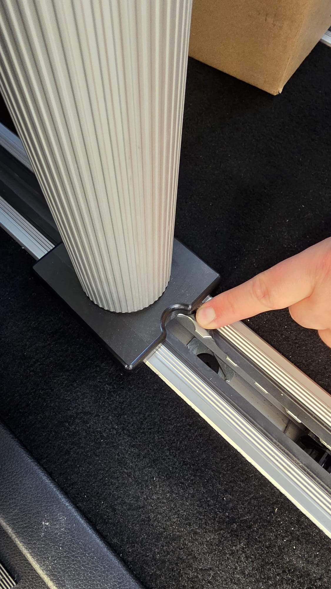 De originele vloerrails van de Mercedes V-Klasse en EQV bieden unieke mogelijkheden voor modulaire interieurs. Deze tafelpoot maakt hier optimaal gebruik van:
